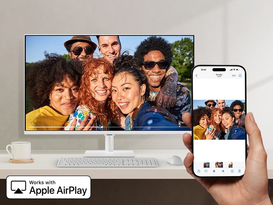 Kết nối không dây liền mạch với các thiết bị Apple mang đến trải nghiệm nội dung đỉnh cao trên màn hình lớn. Với tính năng AirPlay tích hợp, bạn dễ dàng thưởng thức nội dung đa phương tiện hoặc trình chiếu ứng dụng, tài liệu và trang web từ iPhone, iPad hoặc Mac.