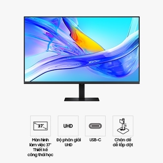 Màn hình làm việc công thái học 37 inch Hiệu suất làm việc được cải thiện nhờ màn hình rộng Độ phân giải UHD Mang đến chất lượng hình ảnh sắc nét Cổng USB-C Cổng USB-C giúp sạc và truyền dữ liệu luôn dễ dàng Chân đế lắp đặt dễ dàng Thiết lập dễ dàng và nhanh chóng