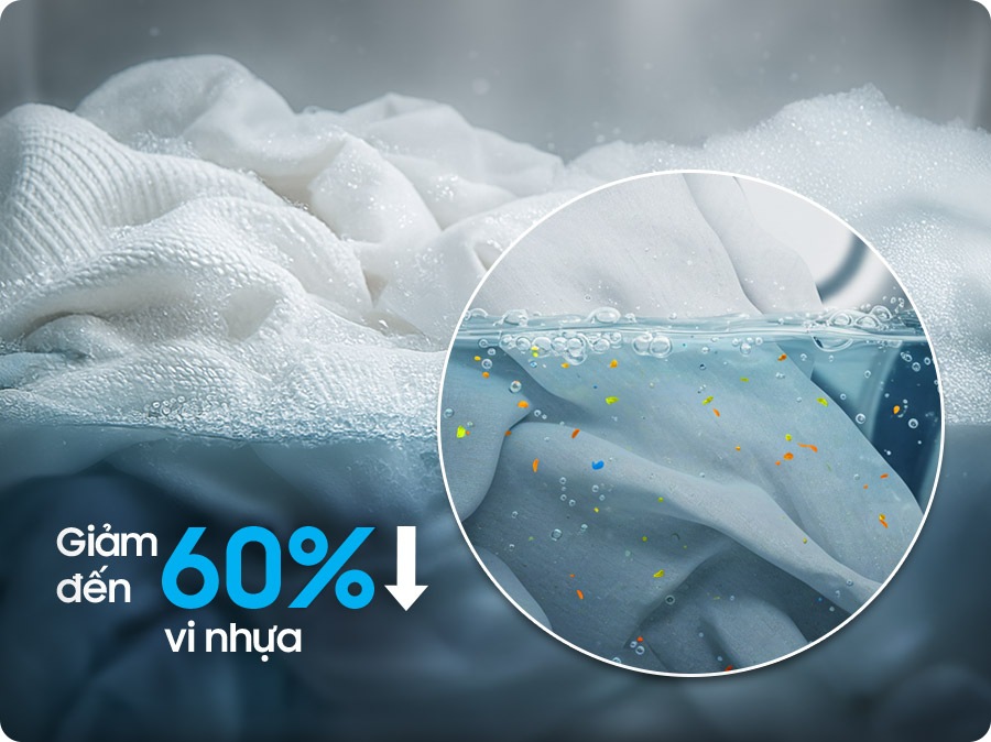 Bằng cách tối ưu hóa tốc độ quay của động cơ và cường độ giặt, chu trình Less Microfiber giúp giảm đến 60%* lượng vi hạt nhựa thải ra môi trường trong trong quá trình giặt.