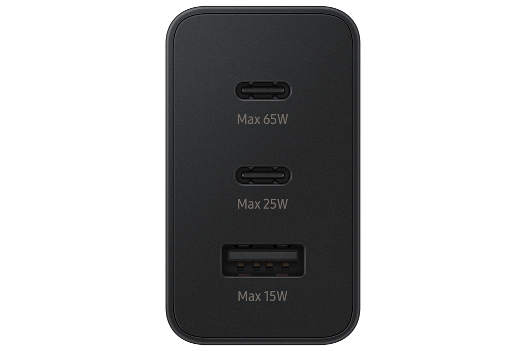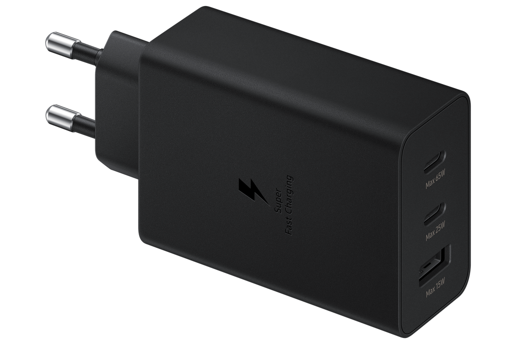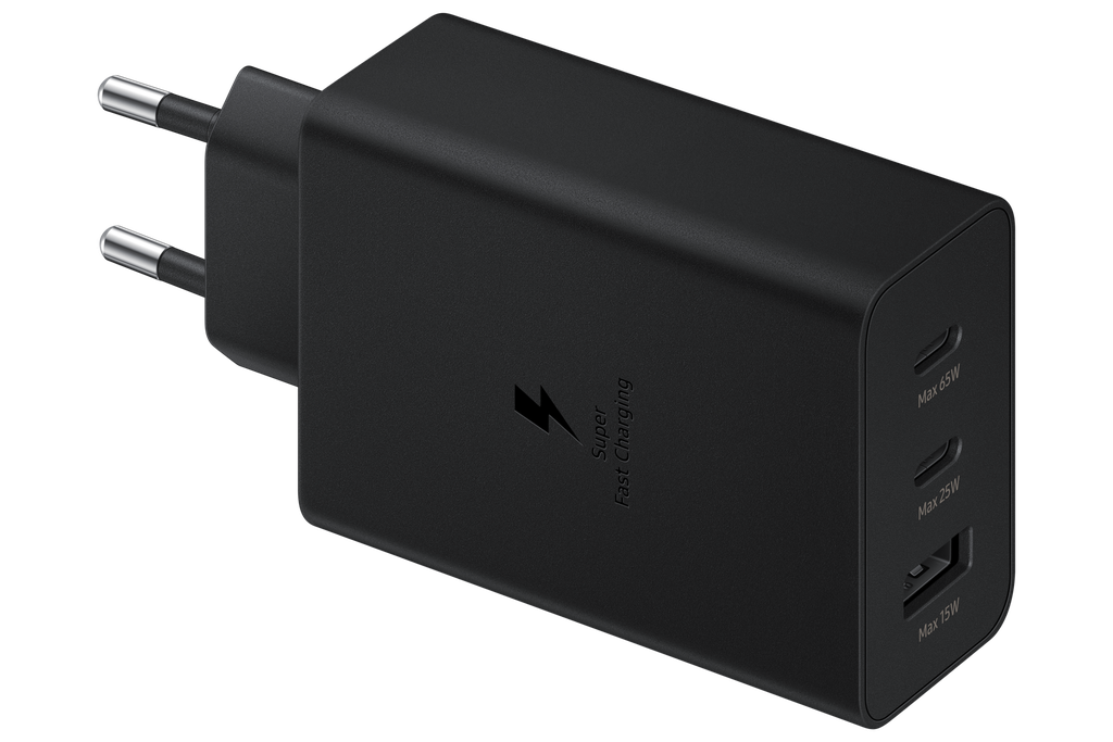 *Bộ sạc 65W này hỗ trợ Sạc siêu nhanh 2.0 (SFC 2.0, PPS 45W). Để tương thích với Sạc siêu nhanh 3.0 (SFC 3.0, PPS 60W) được hỗ trợ trên Galaxy S26 Ultra, khuyến nghị nên sử dụng model Củ sạc 60W EP-T6010. ** Không bao gồm cáp sạc. *** Công suất đầu ra cho một thiết bị so với nhiều thiết bị khác nhau như sau: Tối đa 65W khi sạc một thiết bị trong điều kiện PD 3.0 và SFC (Sạc siêu nhanh) 2.0 với USB-C. Lên đến 25W khi sạc một thiết bị trong điều kiện PD 3.0 và SFC (Sạc siêu nhanh) bằng USB-C. Tối đa 15W cho một thiết bị trong điều kiện AFC (Sạc nhanh thích ứng) với USB-A. Bộ chuyển đổi này có thể sạc đồng thời 3 thiết bị với tổng công suất đầu ra tối đa 65W tương ứng với 35W, 25W và 5W. Tốc độ sạc thực tế có thể thay đổi tùy theo số lượng thiết bị. **** Sạc siêu nhanh (SFC) là phương pháp sạc nhanh của Samsung được hỗ trợ cho Galaxy Notes (Note10 trở lên), Galaxy S Series (S10 5G trở lên) và các loại hỗ trợ SFC khác các thiết bị như iPhone (iPhone8 trở lên), Sạc nhanh thích ứng (AFC) là cổng kết nối nhanh dành cho các thiết bị Samsung. ***** SFC 2.0 (45W) khả dụng trên Galaxy S20 Ultra, Note10 + trở lên. Các thiết bị khác có thể được bổ sung trong tương lai. ****** USB PD 3.0 (Power Delivery) là tiêu chuẩn USB IF để sạc nhanh qua USB-C. Khuyến nghị sử dụng cáp tiêu chuẩn USB. ******* PD 65W & SFC 45W yêu cầu cáp 5A.