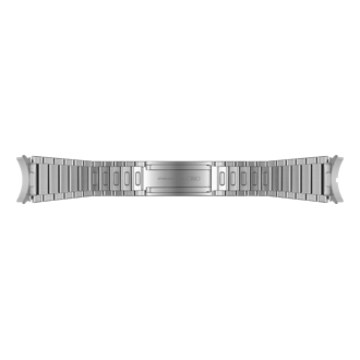 A Galaxy Watch6 Classic device is faced down with a Link Bracelet Band hovering above it. The release button of the band is held down while nearing the bottom of the watch before it is locked with a click. It is zoomed out to show the same mechanism on the upper side of the watch. A Galaxy Watch6 Classic device is faced down with a Link Bracelet Band hovering above it. The release button of the band is held down while nearing the bottom of the watch before it is locked with a click. It is zoomed out to show the same mechanism on the upper side of the watch.