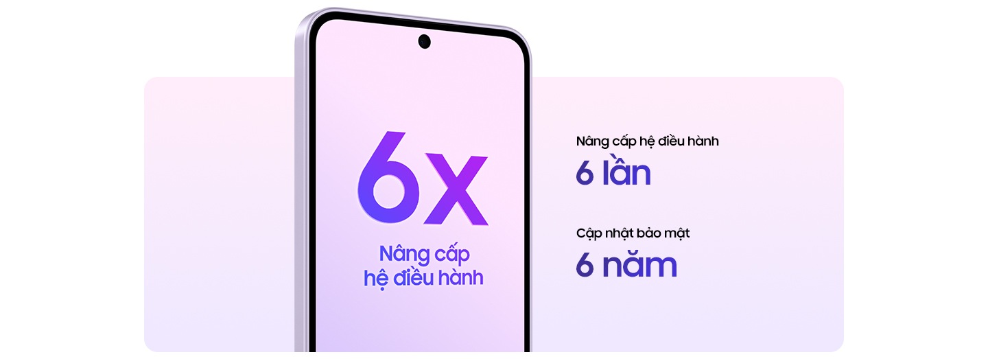 Giữ cho chiếc Galaxy A37 5G của bạn luôn được cập nhật và an toàn tuyệt đối với cam kết hỗ trợ phần mềm dài hạn, cho phép bạn trọn vẹn tận hưởng thiết bị của mình trong nhiều năm tới. Galaxy A37 5G hỗ trợ lên đến 6 lần nâng cấp hệ điều hành, giúp bạn không ngừng khám phá thêm những phương thức mới mẻ và dễ dàng để sáng tạo, kết nối và duy trì hiệu suất làm việc nhờ các thao tác liền mạch cùng tính năng quản lý thiết bị thông minh. Thêm vào đó, với 6 năm cập nhật các bản vá bảo mật và bảo trì, bạn sẽ luôn đi trước một bước để phòng ngừa mọi rủi ro an ninh mạng.4