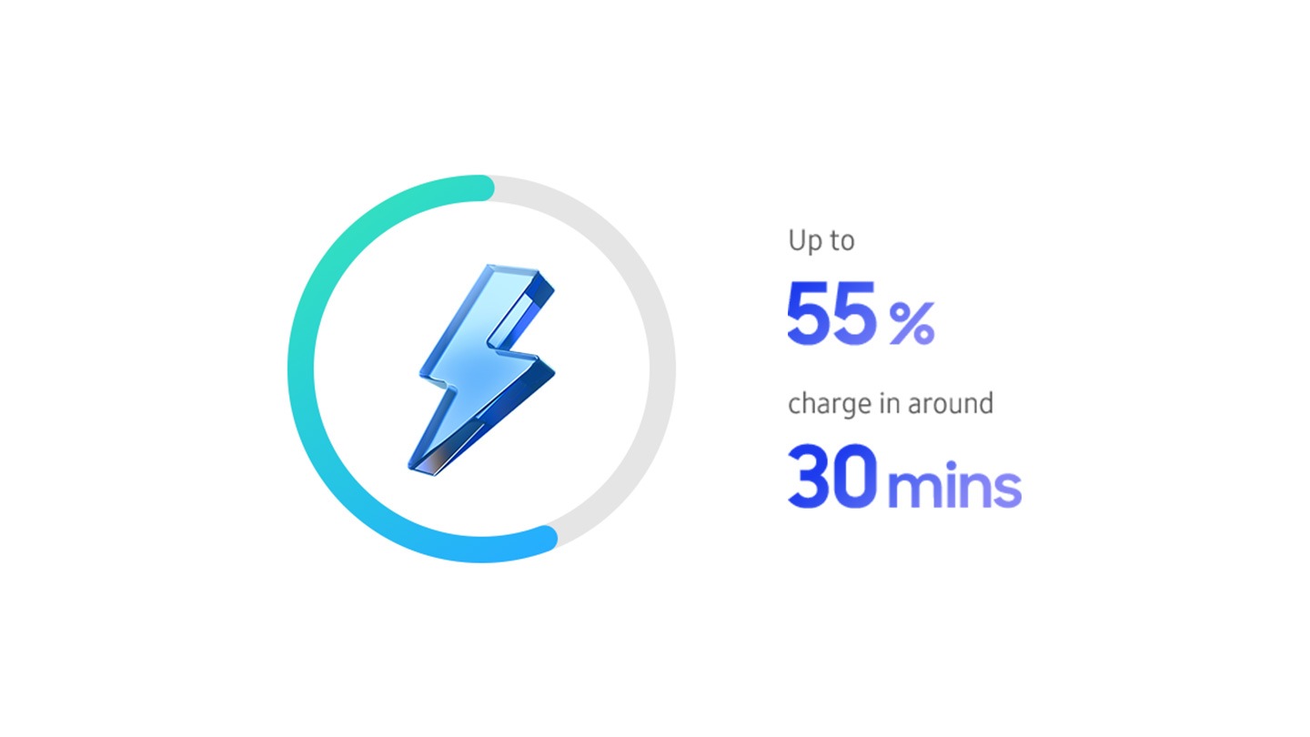 Trải nghiệm trọn vẹn, không lo gián đoạn. Công nghệ Sạc nhanh thần tốc giúp siêu phẩm nạp đầy năng lượng chỉ trong tích tắc – đạt đến 55% pin chỉ trong khoảng 30 phút – để bạn luôn duy trì mạch cảm hứng bất tận.4