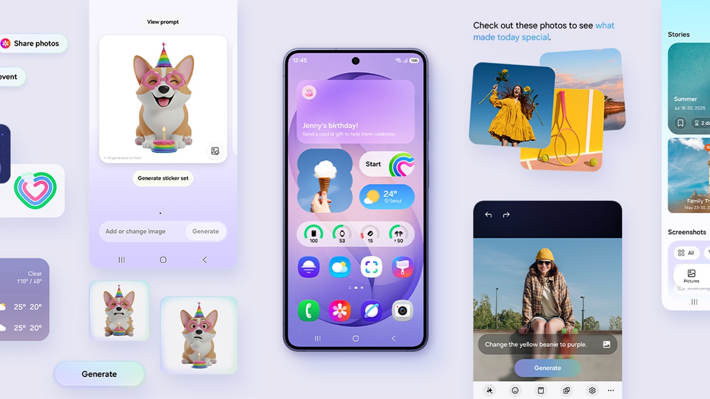 Biến phác thảo hoặc hình ảnh thành bộ sticker sáng tạo đúng chất riêng. Chỉ cần nhập lệnh mô tả hay nét vẽ, Galaxy AI sẽ biến hoá ý tưởng ra nhãn dán độc đáo và sẵn sàng chia sẻ.11
