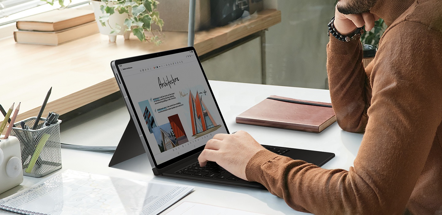 Hoàn thành mọi việc dễ dàng với bao da bàn phím AI. Các keycaps kích thước đầy đủ, phím chức năng và trackpad, kết hợp với chế độ DEX, mang lại trải nghiệm giống như PC với một lần nhấn.2